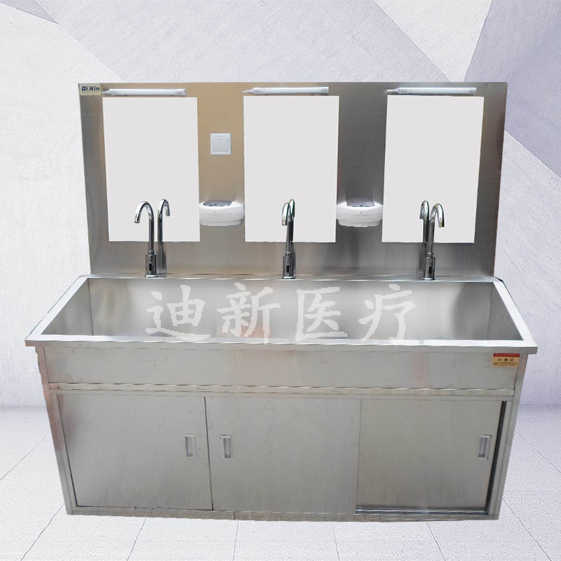 手衛(wèi)生是預(yù)防和控制醫(yī)院感染、保障病人和醫(yī)務(wù)人員安全簡(jiǎn)單經(jīng)濟(jì)有效的措施。因此,全國(guó)各家醫(yī)院對(duì)手衛(wèi)生給予了高度的重視,采取了各種積極有效的措施來(lái)促進(jìn)醫(yī)務(wù)人員的衛(wèi)生,以預(yù)防和降低醫(yī)院感染的發(fā)生,提高醫(yī)療的質(zhì)量。 傳統(tǒng)普通洗手池配備手觸式水龍頭,在洗手過(guò)程中容易造成手的二次污染以及手與水龍頭之間的交叉感染。迪新新型不銹鋼醫(yī)用洗手池選用感應(yīng)式、膝碰式和腳踏式三種出水方式,有效的解決了這一難題。 迪新新型不銹鋼醫(yī)用洗手池的材質(zhì)特點(diǎn)主要有: 1、采用優(yōu)質(zhì)304不銹鋼雙層制作,一體化無(wú)焊縫池體,極易情節(jié),經(jīng)久耐用; 2、漏電保護(hù)設(shè)計(jì),保證了操作人的使用安全; 3、槽體中間特殊靜音處理,造型美觀大方,使用比較方便; 下面迪新小編簡(jiǎn)單的介紹下本公司的感應(yīng)式洗手池、膝碰式洗手池、腳踏式洗手池的主要結(jié)構(gòu)組成: 一、迪新感應(yīng)式洗手池的主要結(jié)構(gòu)組成: 1、配備感應(yīng)水龍頭,紅外感應(yīng)系統(tǒng)靈敏,抗干擾性強(qiáng);不浪費(fèi)水源; 2、配備自動(dòng)皂液器,使用方便衛(wèi)生; 3、有低背板和豪華高背板可供選擇,高背板可配置美容鏡; 4、此外,按照客戶的要求可選配熱水器和烘手器。 二、膝碰式洗手池的主要結(jié)構(gòu)組成: 1、配置304不銹鋼鵝頸水龍頭,造型美觀; 2、膝碰開(kāi)關(guān)出水方便; 3、配備自動(dòng)皂液器,使用方便衛(wèi)生; 4、有低背板和豪華高背板可供選擇,高背板可配置美容鏡; 5、此外,按照客戶的要求可選配熱水器和烘手器。 三、腳踏式洗手池的主要結(jié)構(gòu)組成: 1、安裝腳踏開(kāi)關(guān),主要使用腳踏出水,出水方便; 2、配置304不銹鋼鵝頸水龍頭,造型美觀; 3、配備自動(dòng)皂液器,使用方便衛(wèi)生; 4、有低背板和豪華高背板可供選擇,高背板可配置美容鏡; 5、此外,按照客戶的要求可選配熱水器和烘手器。 歡迎來(lái)電咨詢,服務(wù)熱線:0523-86184406/13961011710